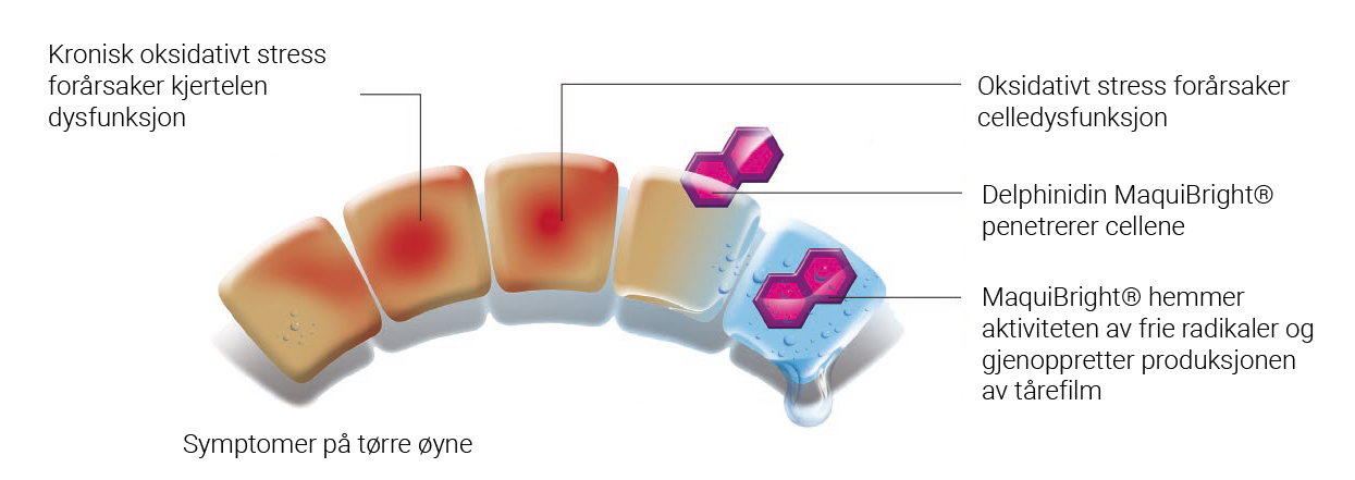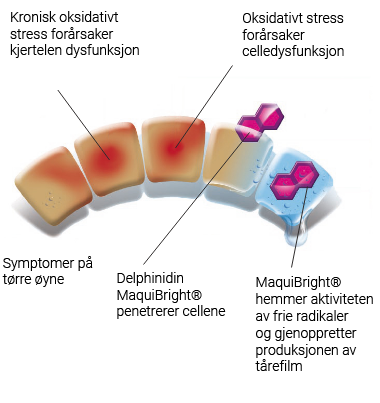 Effektiviteten til MaquiBright® ble bekreftet i en preklinisk studie** som involverte to grupper som lider av moderat tørre øyne. Disse gruppene tok Makibright® med doser på 30 og 60 mg i to måneder.